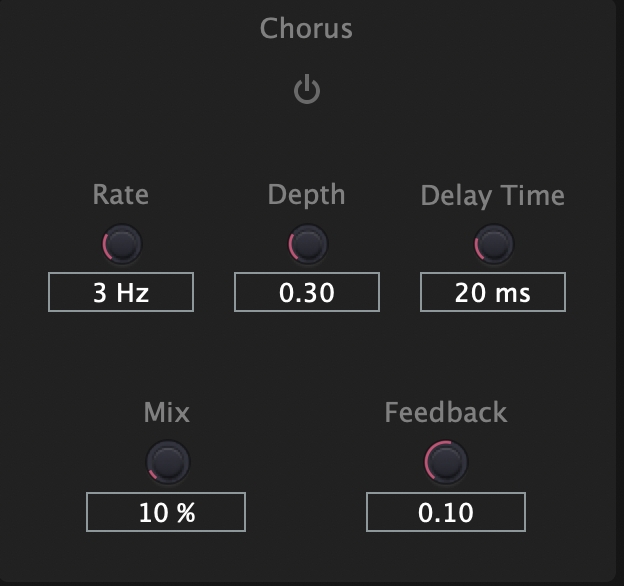Delay Time: 設定 delay line 長度,通常 chorus 效果理想的 delay line 長度為 7-10 ms