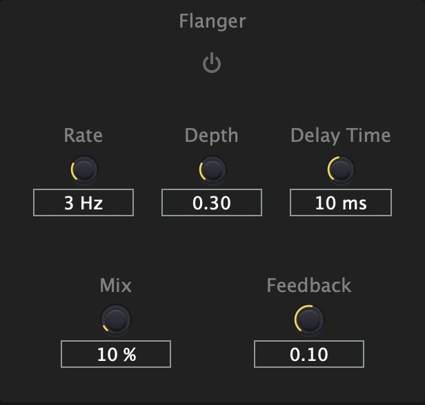 Mix: 原始聲音與經效果器處理後的聲音比例,值為 0 代表原始聲音,值為 1 代表聲音完全經過 flanger 效果作用。