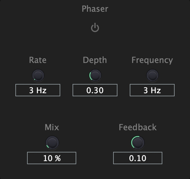 Rate: 設定 LFO 的震動頻率,控制 all pass filter 中心頻率