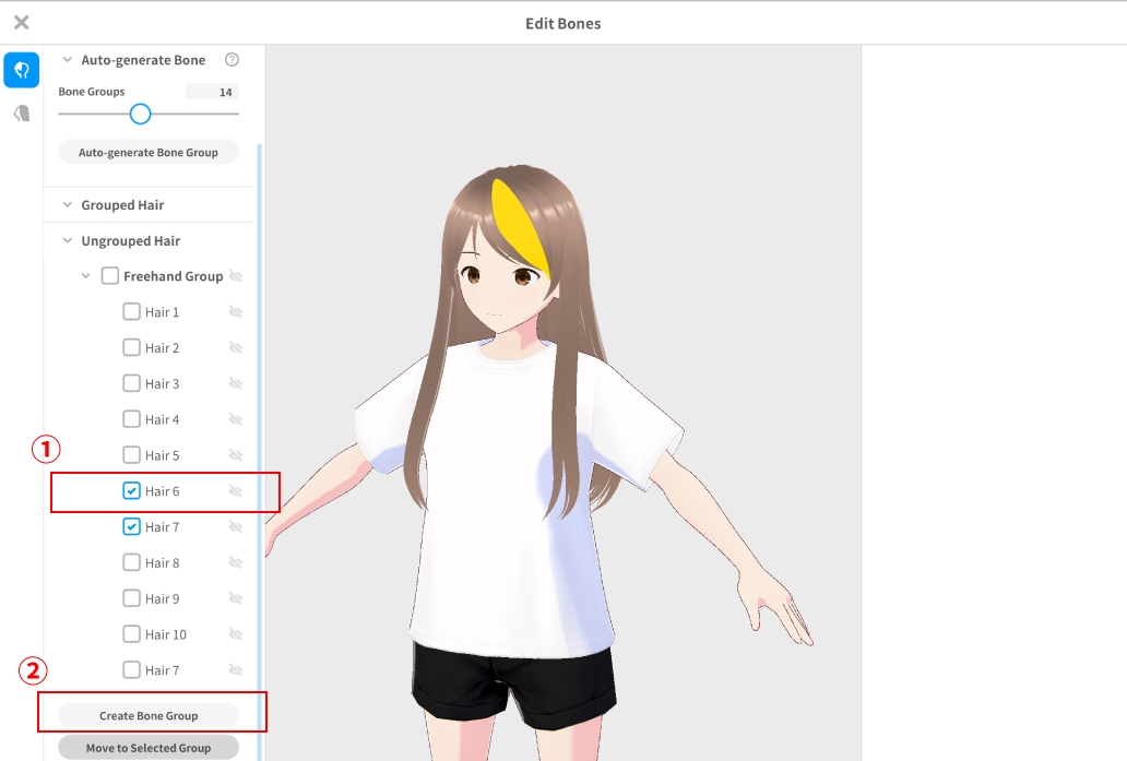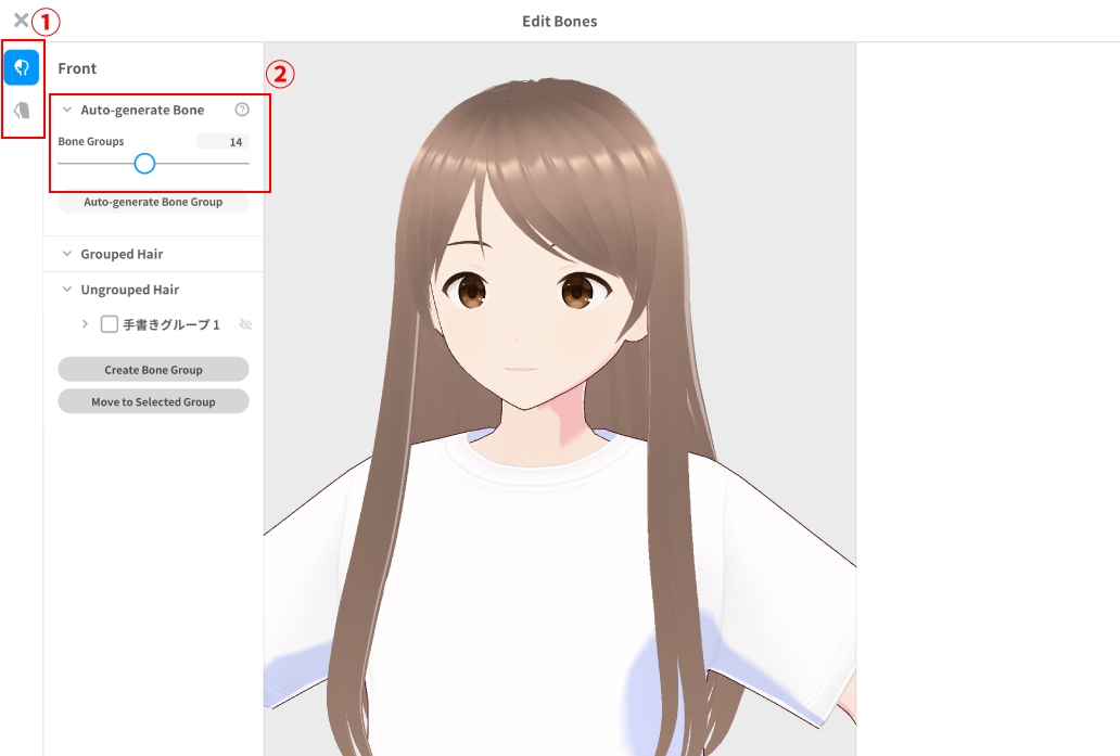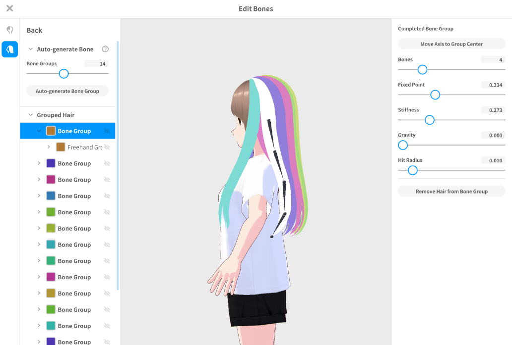VRoid Studio 將依照您設定的骨骼群組數量,盡可能最大化的生成骨骼群組