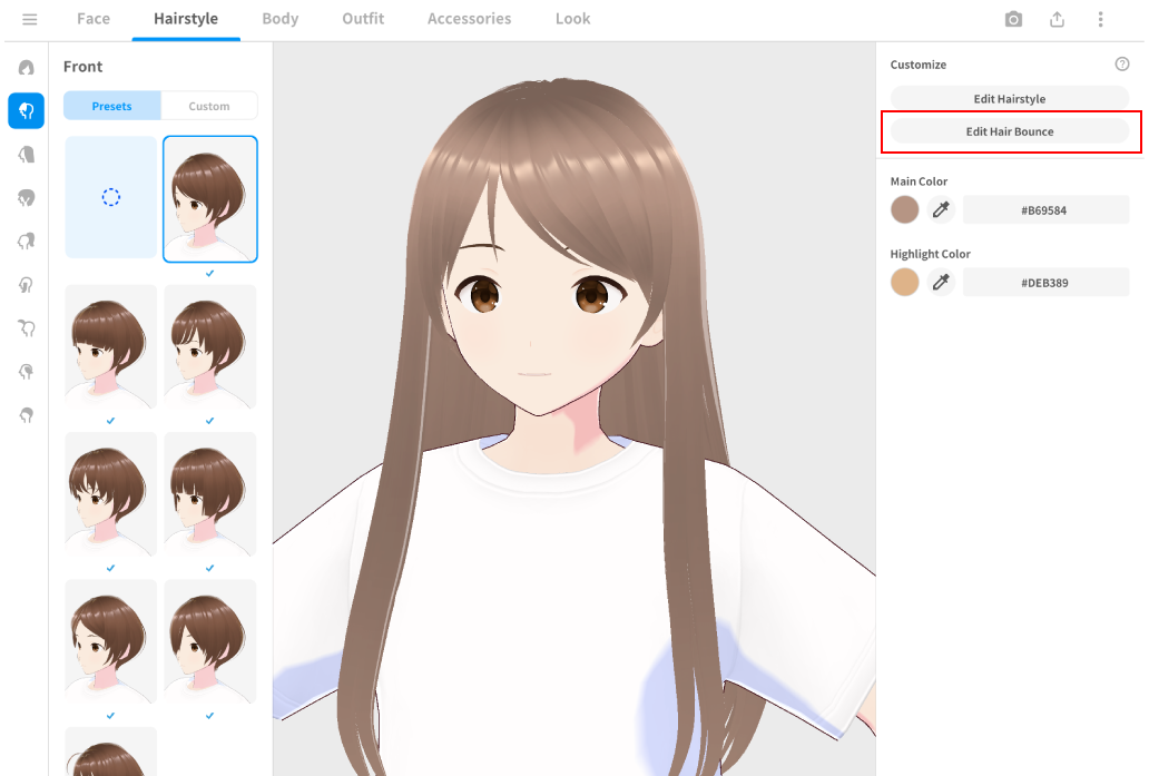 在 VRoiud Studio 中,您可以設定為每一撮頭髮設定「Hair Bounce」。
