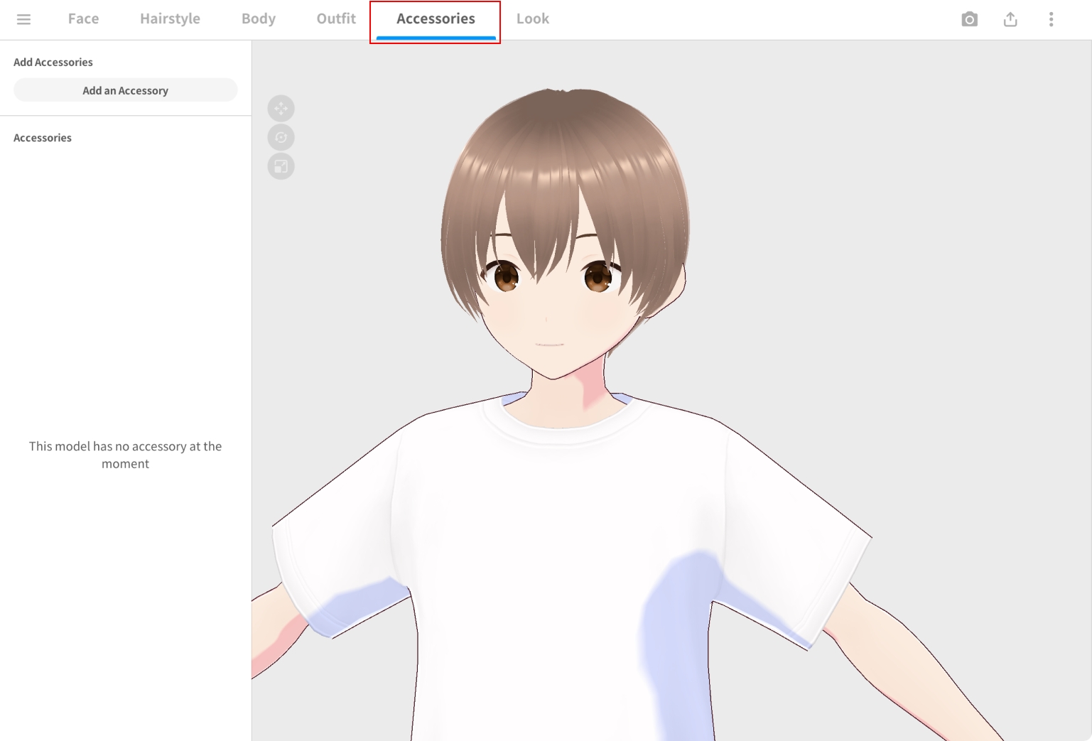 點擊畫面上方的「Accessories」按鈕開啟配件頁面並開始編輯。